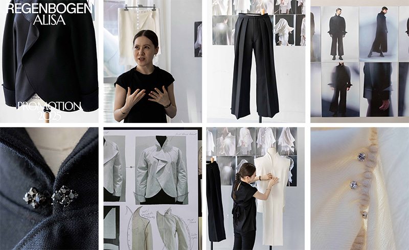 Resonance of a Tale is an exploration of heritage, hybridity, and tender expressions of masculinity through menswear. Introspective pieces merge narrative and craftsmanship to bring an original tale to life, drawing inspiration from ancient Japanese and German folklore. Bringing distant worlds and childhood landscapes in intimate dialogue, the silhouettes explore hybridity across both culture and technique, blending traditional menswear with couture practices such as embroidery. Sourced from Haute Couture deadstock in organic wool, silk, and cotton, the fabrics embrace sensitivity in texture and the understated beauty of the world. Through a poetic lens, the project reflects on identity and belonging, offering a soulful, fluid vision of masculinity grounded in the quiet yet enduring power of storytelling.