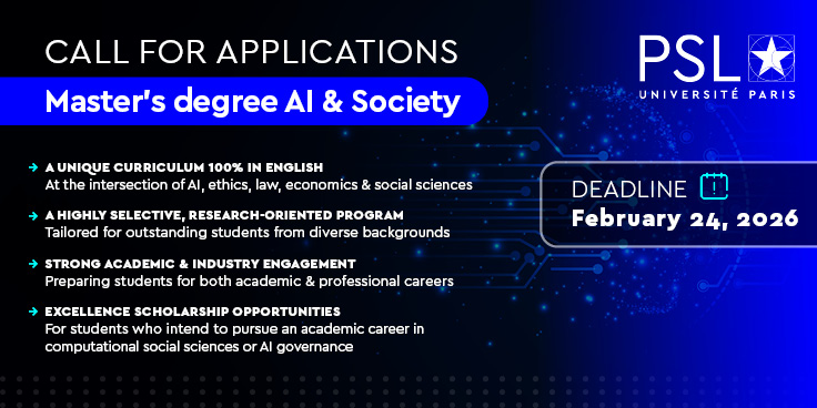 Le Master "IA et Société" s’adresse à des étudiantes et des étudiants issus d'horizons académiques variés, notamment les diplômés en intelligence artificielle, en sciences sociales quantitatives, ainsi que les ingénieurs souhaitant élargir leurs compétences en analyse des impacts sociaux des technologies numériques. Ce master met l’accent sur l’interdisciplinarité, permettant aux étudiants de développer une compréhension approfondie des défis et opportunités que présente l'IA dans nos sociétés contemporaines (Voir détails dans l'onglet Admissions).